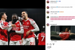 他也在赛后通过社媒晒出自己和队友的相拥庆祝照,并配文:“红色统治北伦敦!”