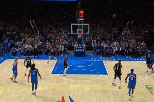 NBA生涯首个三分!杨瀚森迎着哈滕三分轰进!
