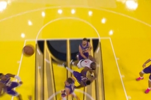 这球见功力!詹姆斯弧顶击地砸传越过三人防守助攻里夫斯得分